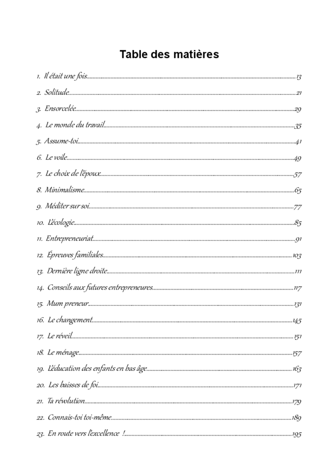 La lecture de ton livre m’a délivré de l’engrenage dans lequel je me trouvait depuis quelques années, j’allais de psychologue en thérapeute ne trouvant personne pour comprendre mon mal-être. La dernière psychologue que je suivait fut choquée de voir la détermination que j’ai eu à lui dire ça y’es j’arrête TouT!!! elle m’a d’ailleurs demandé le livre que j’avais tjrs dans mon sac je lui ai prêté elle ne me l’a jamais rendu🙂 mais hamdoulilah ce livre la appris La RESILIENCE et la détermination.